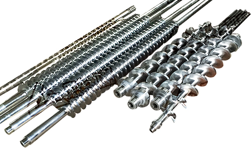 材質(zhì):基材 38CrMoAl A,螺棱角表面采用雙合金進(jìn)口合金鋼材,經(jīng)過(guò)特殊處理,能有效提高機(jī)筒螺桿的耐磨性,提高使用壽命。